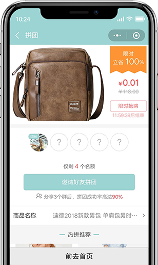 微拼團(tuán)是商品營(yíng)銷和售賣的一種方式,通過(guò)社交關(guān)系鏈分享傳播,可自由設(shè)置開(kāi)團(tuán)人數(shù),開(kāi)團(tuán)價(jià)格。用戶在分享時(shí),小程序上實(shí)時(shí)顯示當(dāng)前的拼團(tuán)信息,比如已經(jīng)有多少人參與,價(jià)格是多少等。